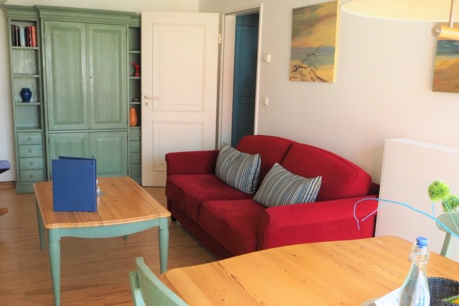 Die 50 m² großen Appartements im Obergeschoss bieten Behaglichkeit und Komfort. Sie sind gesundheitsbewusst und naturbezogen eingerichtet mit aus Holz gefertigten Möbeln sowie Fußböden.